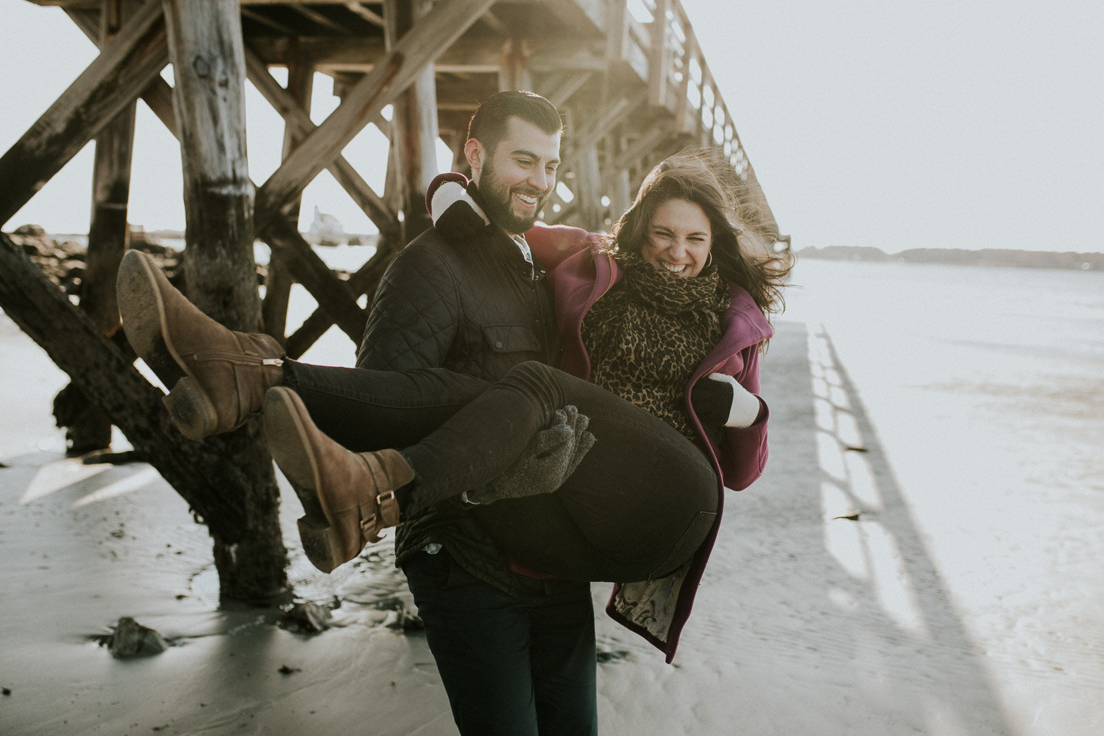 Sarah and Ben Coffee Shop and Beach Engagements- Kittery, Maine